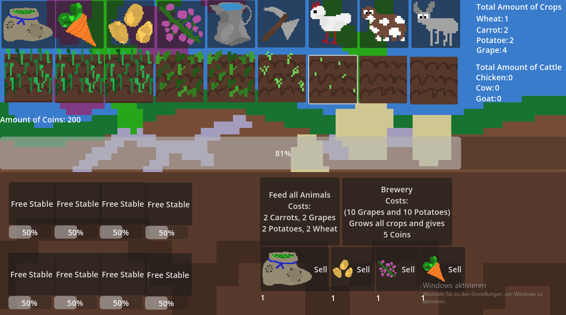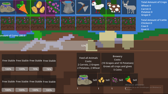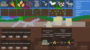 You own a garden where you can click the seeds and plant them into 9 different fields and when watered the start popping out of the ground and start growing. These Crops can be used to feed your animals or sold into a dynamic economy. You can also own animals which can be sold (everytime the animals are fed the value increases). After 5 Minutes the game is over, making it a short cozy experience.